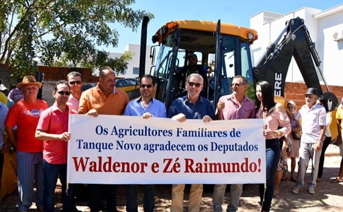 Em Tanque Novo, através de emendas dos deputados Waldenor e Zé Raimundo, já foram destinados R$ 700 mil para a saúde, aquisição de três tratores com implementos, 12 km de tubos e também está sendo licitado o plano de saneamento básico do município, com recursos de aproximadamente R$ 200 mil.