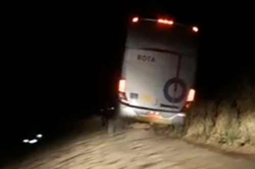 Um vídeo enviado a nossa reportagem mostra a situação de um ônibus da Rota que por pouco não tombou na referida estrada.