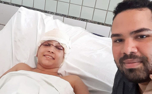 “O médico fez o reimplante, mas teve muitos trombos e, por isso, eles deverão remover. Antes, a chance de o implante vingar era de 30%. Agora, está em 1% e, provavelmente, vai secar e precisar ser removido. Por isso, devem fazer enxertos com pele das costas e dos glúteos dela”, declara Eduardo.