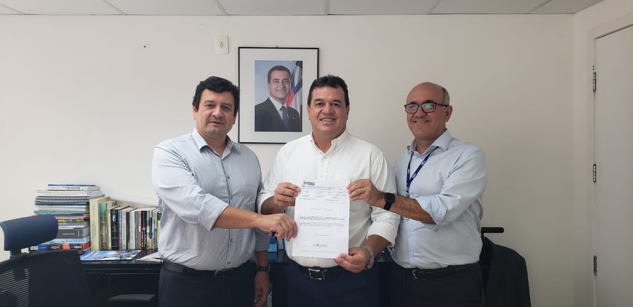 Hoje, 12/09, em agenda de trabalho o deputado Marquinho Viana esteve com o presidente da Embasa, Rogério Cedraz, e o Diretor de Operação e Expansão do Interior da Embasa, Ubiratan Matos para a assinatura da Ordem de Serviço para a empresa responsável pela elaboração o projeto de implantação do sistema de abastecimento de água no distrito de Iguatemi, em Livramento. Esta obra é compromisso assumindo pelo governador Rui Costa, solicitado pelo deputado junto a população do município.