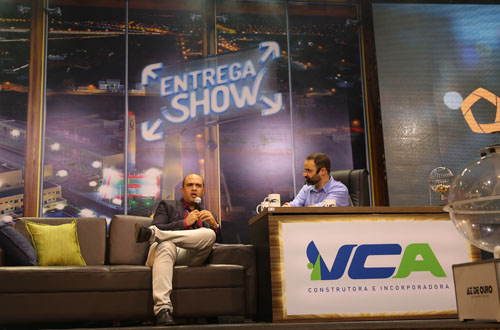 Coisas que a gente não vê todo dia. A VCA Construtora, empresa que se destaca no mercado imobiliário baiano, mais uma vez alcança o inusitado ao promover um talk show em Vitória da Conquista. Isso mesmo, um programa de tv no mesmo formato dos famosos programas de entrevista norte-americanos, que no Brasil ficou marcado com o programa do Jô Soares e também com o recente programa “The Noite”, com Danilo Gentilli. O evento aconteceu no Campus Vivant, outro empreendimento da construtora que foi entregue no mês de maio, e recebeu mais de mil pessoas, entre clientes do DON Residencial e funcionários para um evento divertido e cheio de boas surpresas.