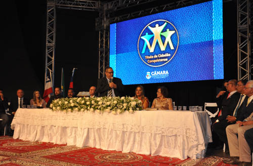 De braços abertos. É assim que Vitória da Conquista recebe as pessoas que escolhem a cidade para morar, estudar e trabalhar. Algumas dessas pessoas se identificam com a cidade, desenvolvem por ela amor o suficiente para trazer benefícios e já são considerados filhos da terra, ajudando a construir a nossa história de 179 anos. Na noite de hoje (06) a Câmara Municipal de Vitória da Conquista concedeu o Título de Cidadão Conquistense a 39 dessas pessoas, no Centro de Cultura Camillo de Jesus Lima.