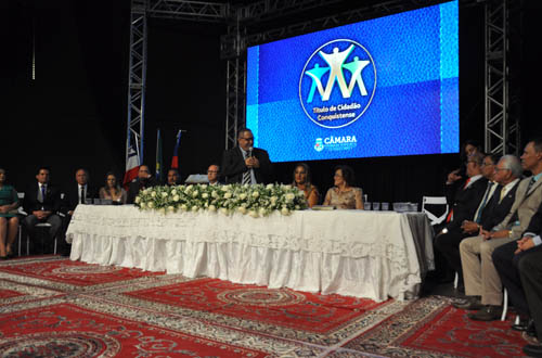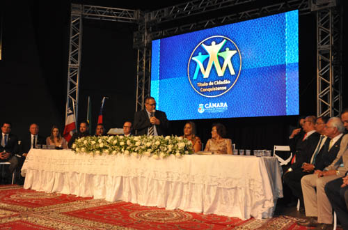 De braços abertos. É assim que Vitória da Conquista recebe as pessoas que escolhem a cidade para morar, estudar e trabalhar. Algumas dessas pessoas se identificam com a cidade, desenvolvem por ela amor o suficiente para trazer benefícios e já são considerados filhos da terra, ajudando a construir a nossa história de 179 anos. Na noite de hoje (06) a Câmara Municipal de Vitória da Conquista concedeu o Título de Cidadão Conquistense a 39 dessas pessoas, no Centro de Cultura Camillo de Jesus Lima.