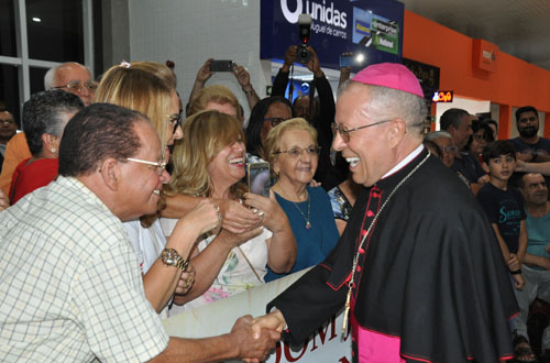 O novo Arcebispo Metropolitano da Arquidiocese de Vitória da Conquista, Dom Josafá Menezes, desembarcou no Aeroporto Glauber Rocha às 19h de hoje (sexta-feira). Ele foi recebido pela comunidade católica da cidade com muito carinho, alegria e festa.