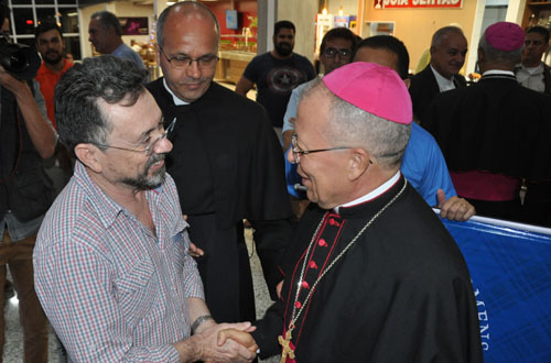 O novo Arcebispo Metropolitano da Arquidiocese de Vitória da Conquista, Dom Josafá Menezes, desembarcou no Aeroporto Glauber Rocha às 19h de hoje (sexta-feira). Ele foi recebido pela comunidade católica da cidade com muito carinho, alegria e festa.