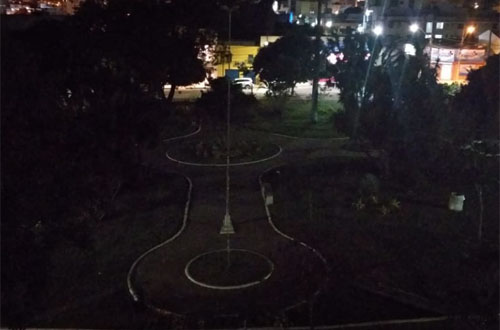A praça Orlando Leite, mais conhecida como pracinha do Gil, é um dos pontos mais conhecidos de Vitória da Conquista. Ela é cercada pelas Avenidas Vivaldo Mendes e Siqueira Campos, entre os bairros Recreio e Centro da cidade. A manutenção parece estar em dia, bem limpa e com os canteiros bem bonitos. Mas uma situação está chamando a atenção de quem passa pela localidade, é a escuridão que tomou conta da praça nos últimos dias. O Blog do Rodrigo Ferraz mostra essa foto e aproveita para fazer o alerta à prefeitura para a troca das lâmpadas.