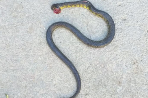 “Ficamos com medo, não sabia se era venenosa, na dúvida matei”, disse o tio da criança, informando que essa é a terceira vez que uma cobra aparece na sua residência.