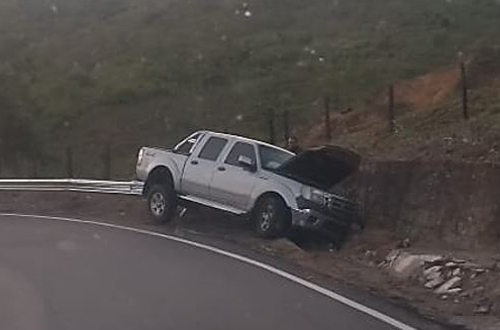 Uma picape cabine dupla, que subia a serra se descontrolou, atravessou a contramão e se chocou contra um paredão de concreto e pedra, durante a realização de uma curva, na altura do Km 71 da rodovia.