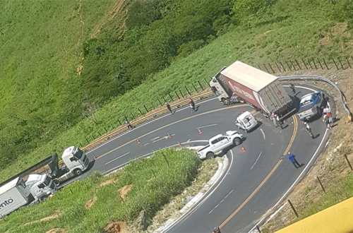 Uma colisão envolvendo uma caminhonete oficial do Governo do Estado e uma carreta simplesmente ‘travou’ a via.