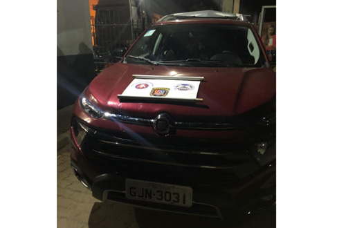 Por volta das 22h10 guarnições de RONDESP em continuidade à ocorrência policial envolvendo uma liderança do PCC em Heliópolis, São Paulo, presa no Condomínio Mirante da Conquista, em posse de armas de fogo e drogas, a qual possuía documentação falsificada, as equipes de área foram informadas que o veículo FIAT/Toro que o mesmo transitava na cidade de Vitória da Conquista (possivelmente roubada) encontrava-se em um esconderijo no bairro Cruzeiro. As guarnições diligenciaram na localidade e localizaram em uma residência a caminhonete, e após verificação dos caracteres de identificação do veículo constatou-se adulteração de chassi. Ainda em buscas na residência foi apreendido um simulacro de arma de fogo tipo pistola com o proprietário da residência. O envolvido foi encaminhado para delegacia competente para adoção das medidas cabíveis, bem como o veículo e os produtos encontrados.