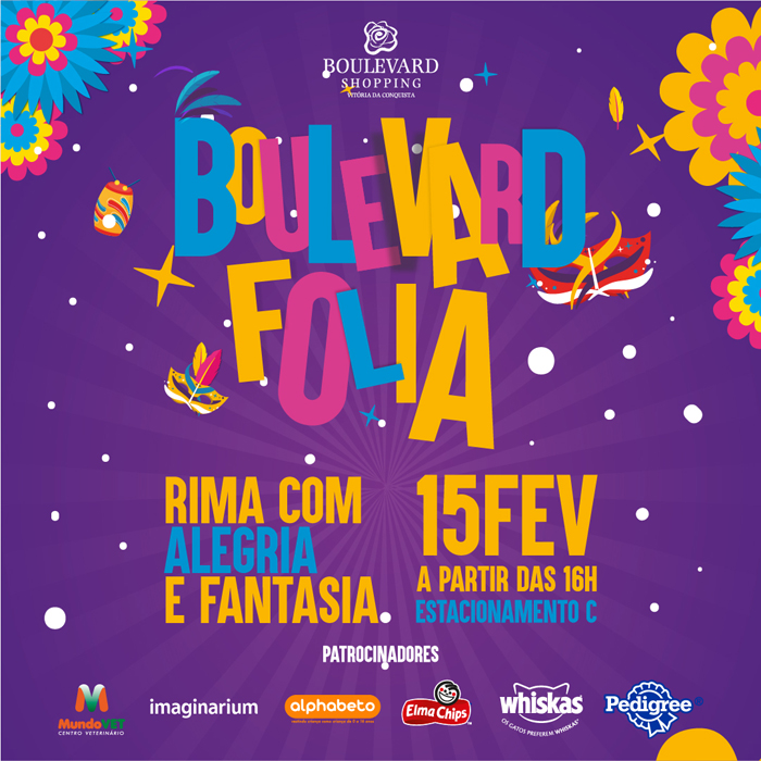 O Carnaval esse ano começa mais cedo para os conquistenses, isso porquê, no dia 15 de fevereiro, acontece o Boulevard Folia Kids, no Estacionamento C, do Boulevard Shopping. O evento tem entrada gratuita e promete animar a família, que pode levar seus pets para participar da festa. Entre as atrações, coreografias carnavalescas, concurso de fantasias, pinturas artísticas, música, desfiles e muito mais.