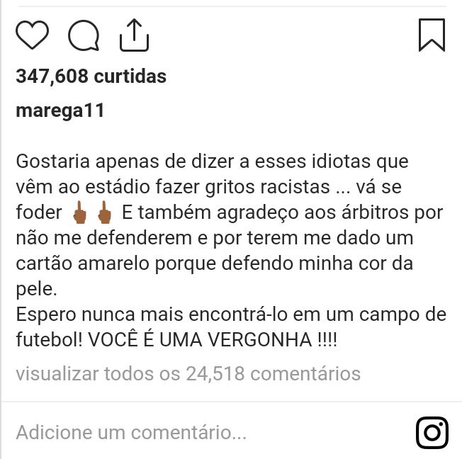 Após o jogo, Marega fez um desabafo por meio do Instagram.