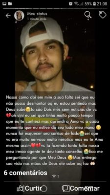 Luan Vinícios Rodrigues de Oliveira está desaparecido desde o dia 13 de junho de 2018. A mãe do jovem sofre desde o seu desaparecimento.