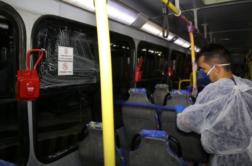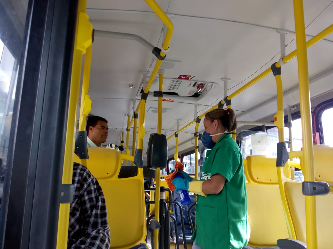 Na manhã desta quarta-feira (18), funcionários das empresas fazem a limpeza dos ônibus durante as paradas, utilizando álcool gel e desinfetantes capazes de destruir o Coronavírus. Essa medida vai ser realizada diariamente em vários momentos.