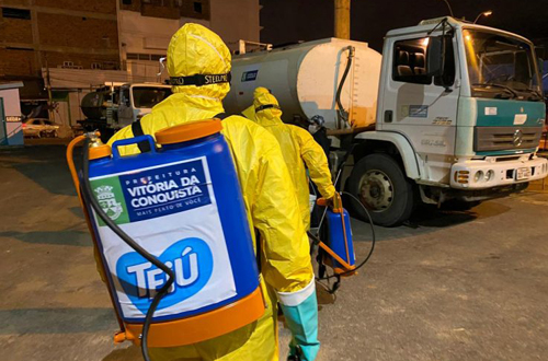 Desde quando surgiram os primeiros casos suspeitos de coronavírus em Vitória da Conquista, a Secretaria de Serviços Públicos tem intensificado a limpeza da cidade, a exemplo da lavagem do terminal de ônibus que tem acontecido nas madrugadas. Essa ação, em parceria com a Teiú, viabiliza uma desinfecção mais profunda para dar mais segurança às pessoas que precisam circular por esses espaços. “O intuito principal dessa iniciativa é colaborar com a higienização da cidade, eliminando o vírus e deixar a população um pouco mais segura nesse momento tão difícil que o Brasil atravessa”, explicou o diretor da Teiú, José Marinho de Andrade.