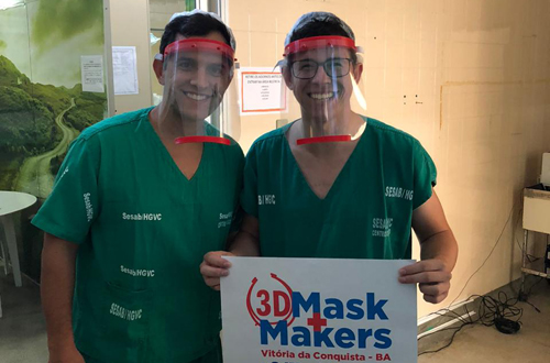 Em Vitória da Conquista, acompanhamos exemplos como o da “3D Mask Makers” ou “fazedores de máscaras 3D”, em português. A iniciativa, composta por grupo de pesquisadores e “makers” baianos, surgiu com o objetivo de produzir máscaras para auxiliar na proteção dos profissionais de saúde em hospitais. As máscaras, compostas basicamente por acrílico 4 mm e petg, são um auxílio extra na proteção destes profissionais, desde que compondo o já existente EPI (Equipamento de Proteção Individual) hospitalar. Outro projeto que produz máscaras em acetato e cortadas a laser, também segue auxiliando na produção dessas máscaras.