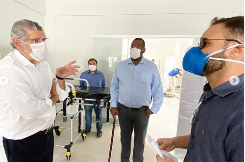 Fui vistoriar o trabalho para entrega do Centro de Referência de Combate a Covid-19, que faremos já na próxima segunda-feira. Na oportunidade recebo do diretor da @vcaconstrutora, Jardel Couto, a doação de 4 biombos, 6 camas hospitalares e 2 macas pandiola.
