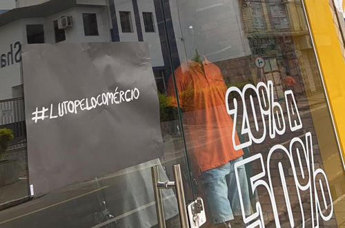 Conquista: Com placas de luto, lojistas pedem a abertura do comércio