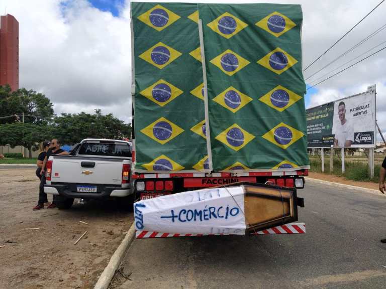 Os comerciantes de Vitória da Conquista realizaram uma nova carreta pedindo a reabertura do comércio na manhã desta sexta-feira (17). Com direito a carro de som e um caixão pendurado em um caminhão, simbolizando luto pelo comércio, os lojistas saíram do Bosque da Paquera e estão seguindo pelas ruas da cidade. Nos carros, adesivos e cartazes de protesto contra o decreto publicado pelo prefeito Herzem Gusmão que determina que todas as lojas permaneçam fechada.