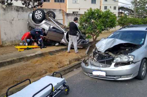 Segundo informações obtidas pela nossa reportagem, com o impacto um dos veículos capotou e foi parar na calçada.