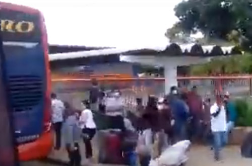 Apesar do terminal rodoviário de Vitória da Conquista estar fechado, vários ônibus têm chegado lotados de passageiros e desembarcam em frente a rodoviária.