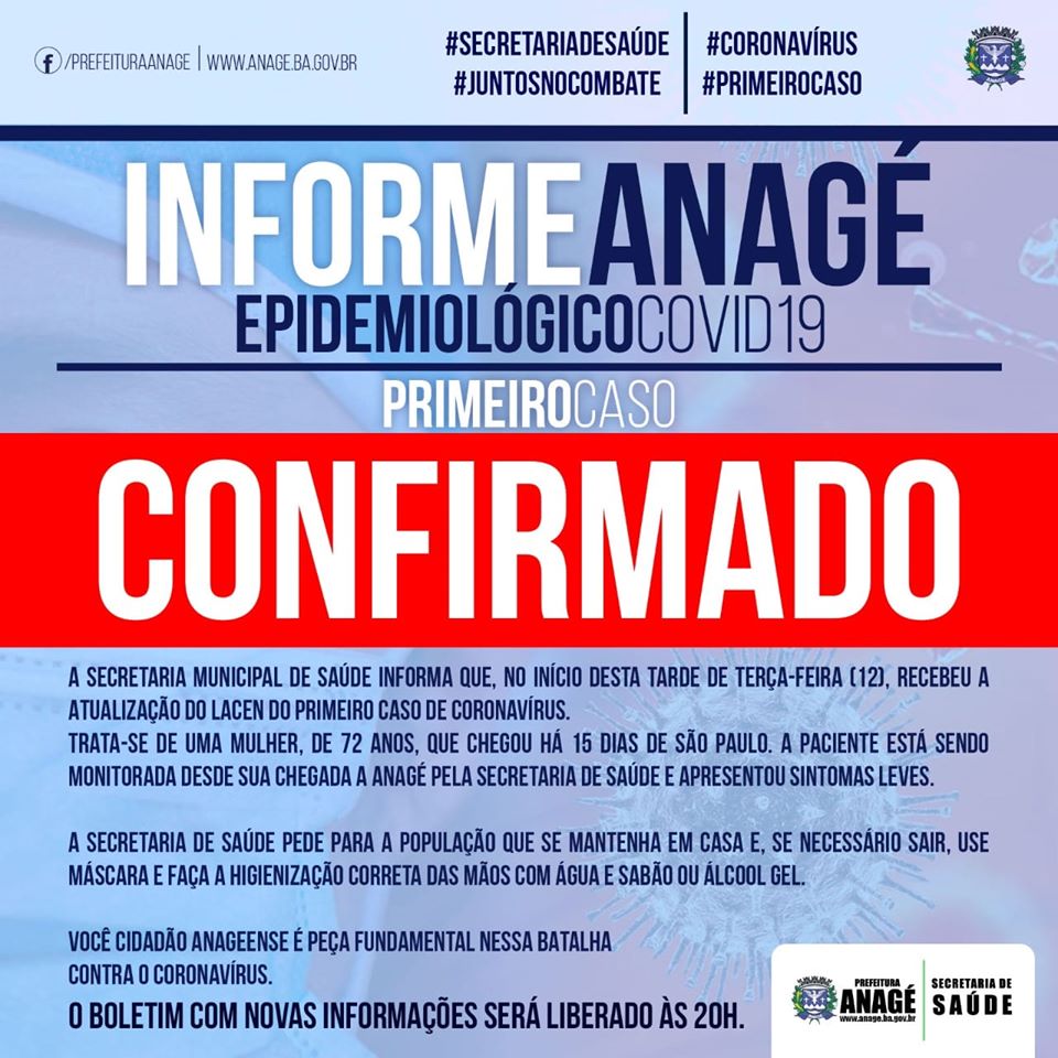 Anagé registra o 1º caso de coronavírus, é uma mulher Por Rodrigo Ferraz postado em 12 de maio de 2020 às 17:32