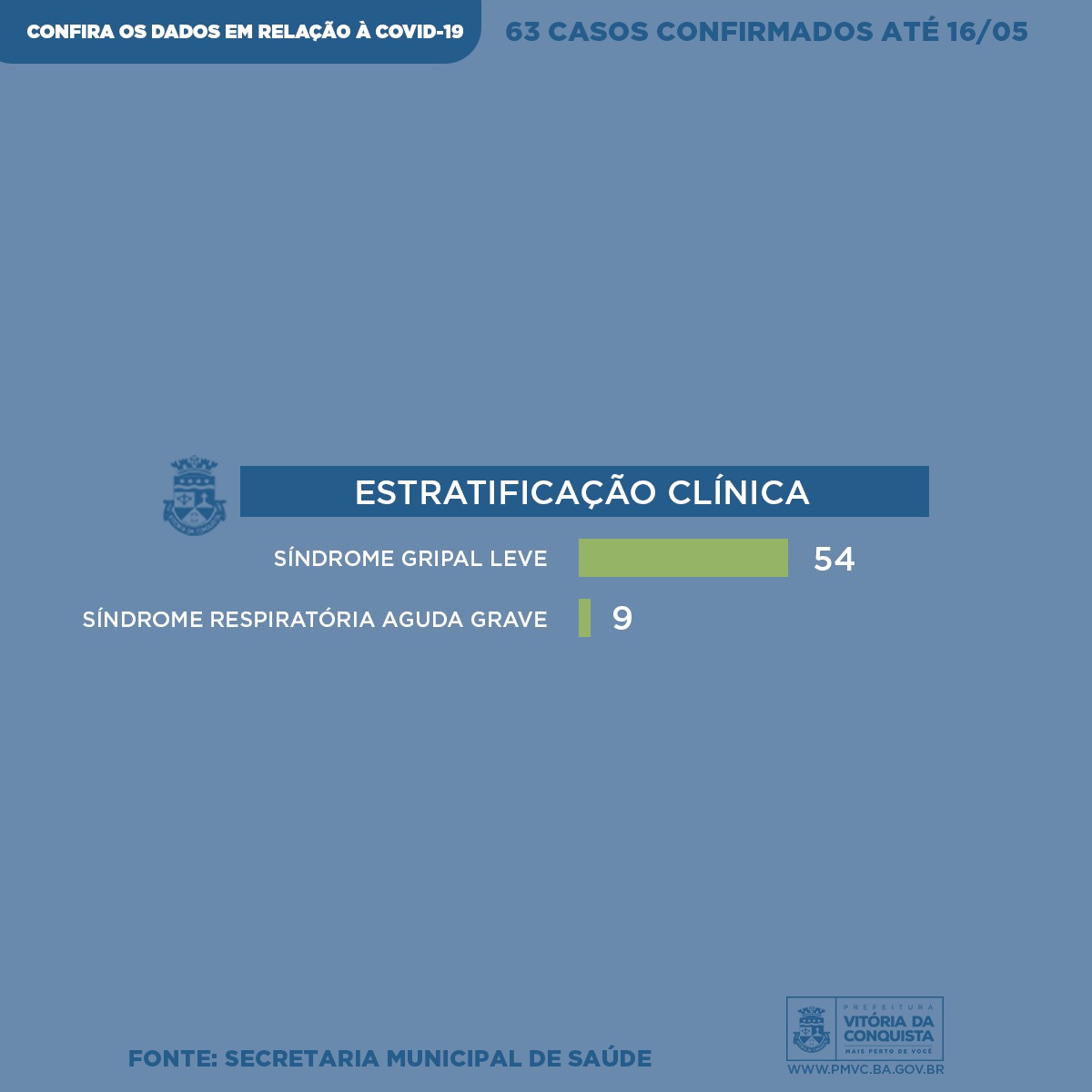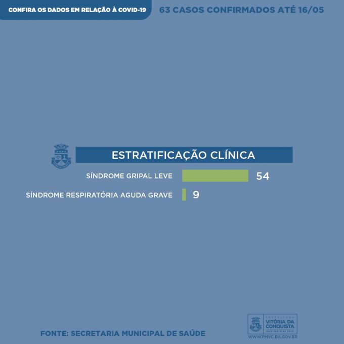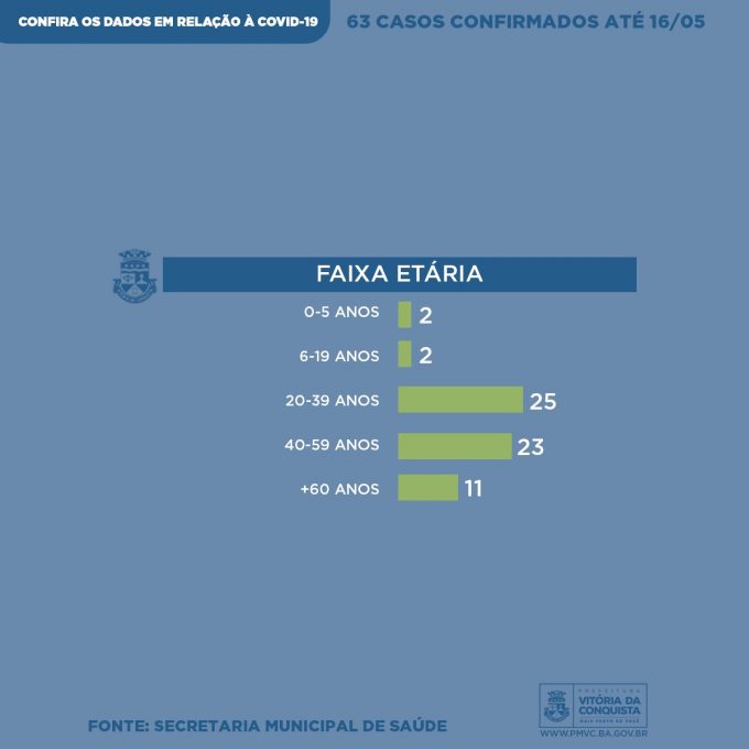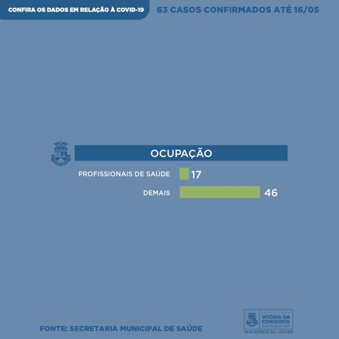 Durante a última semana foram confirmados 20 novos casos de pessoas infectadas pelo novo coronavírus em Vitória da Conquista, chegando ao número de 63 casos positivos da doença até essa sexta-feira (15). A Secretaria Municipal de Saúde divulgou informações atualizadas e detalhadas do perfil desses pacientes que testaram positivo.