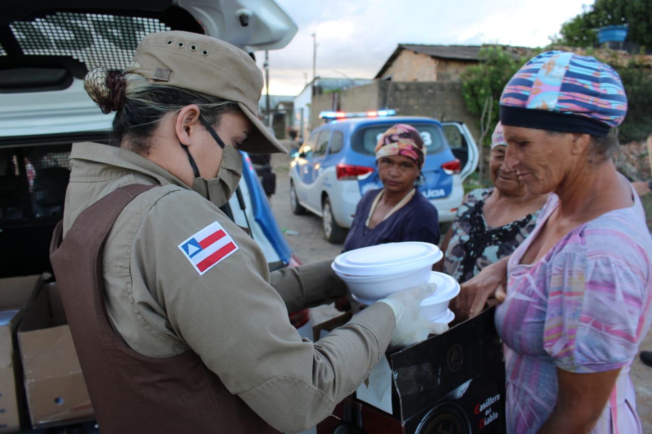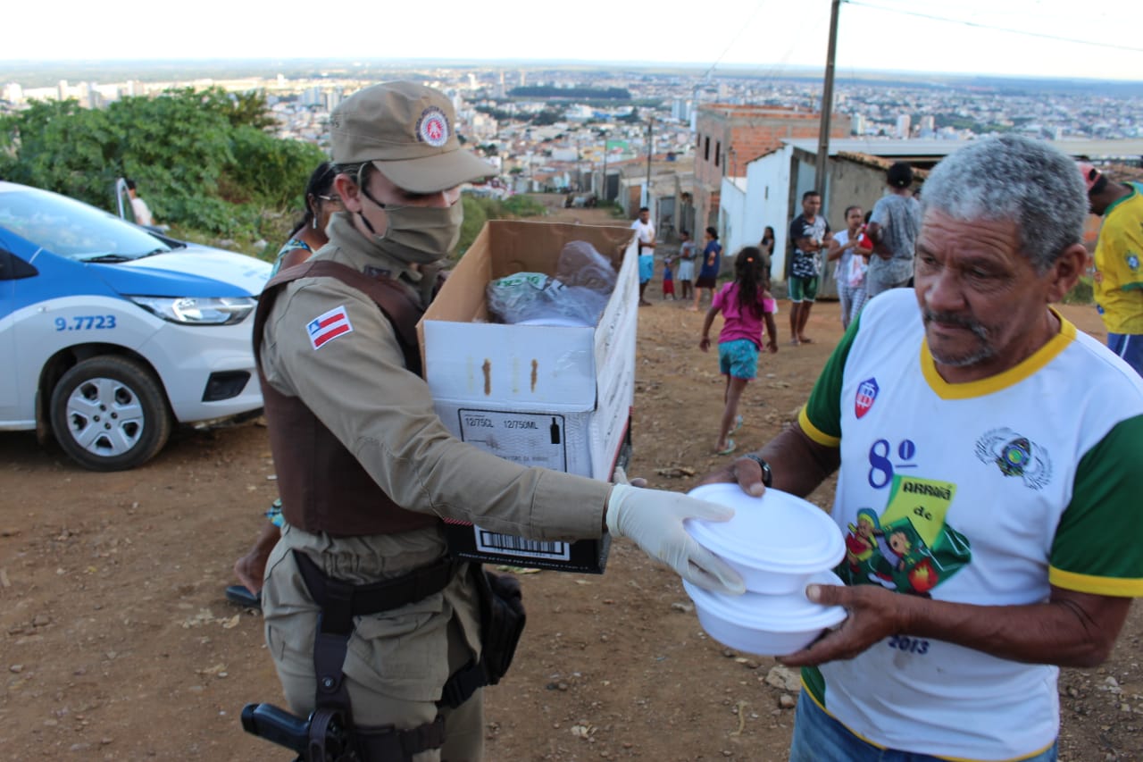 Trezentos e dezenove marmitas foram entregues na quinta-feira (11), pela Base Comunitária de Segurança (BCS) de Vitória da Conquista, para 148 famílias dos bairros Veloso, Nova Cidade, Pedrinhas e Nova Esperança. Na oportunidade também foram distribuídos oito cestas básicas e kits de higiene pessoal.