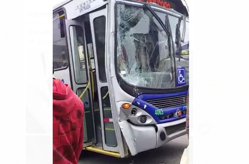 Um veículo da Viação Rosa acabou colidindo na traseira de um ônibus da Cidade Verde, no centro da cidade, na Avenida Régis Pacheco.