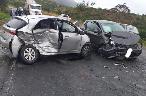 Chovia no momento em que um motorista perdeu o controle da direção do veículo e acabou se chocando com mais dois carros. Um dos carros saiu da pista e desceu capotando na ribanceira, parando com os pneus para cima. Um dos veículos envolvidos no acidente é um Fiat Argo, com placa de Belo Horizonte – MG