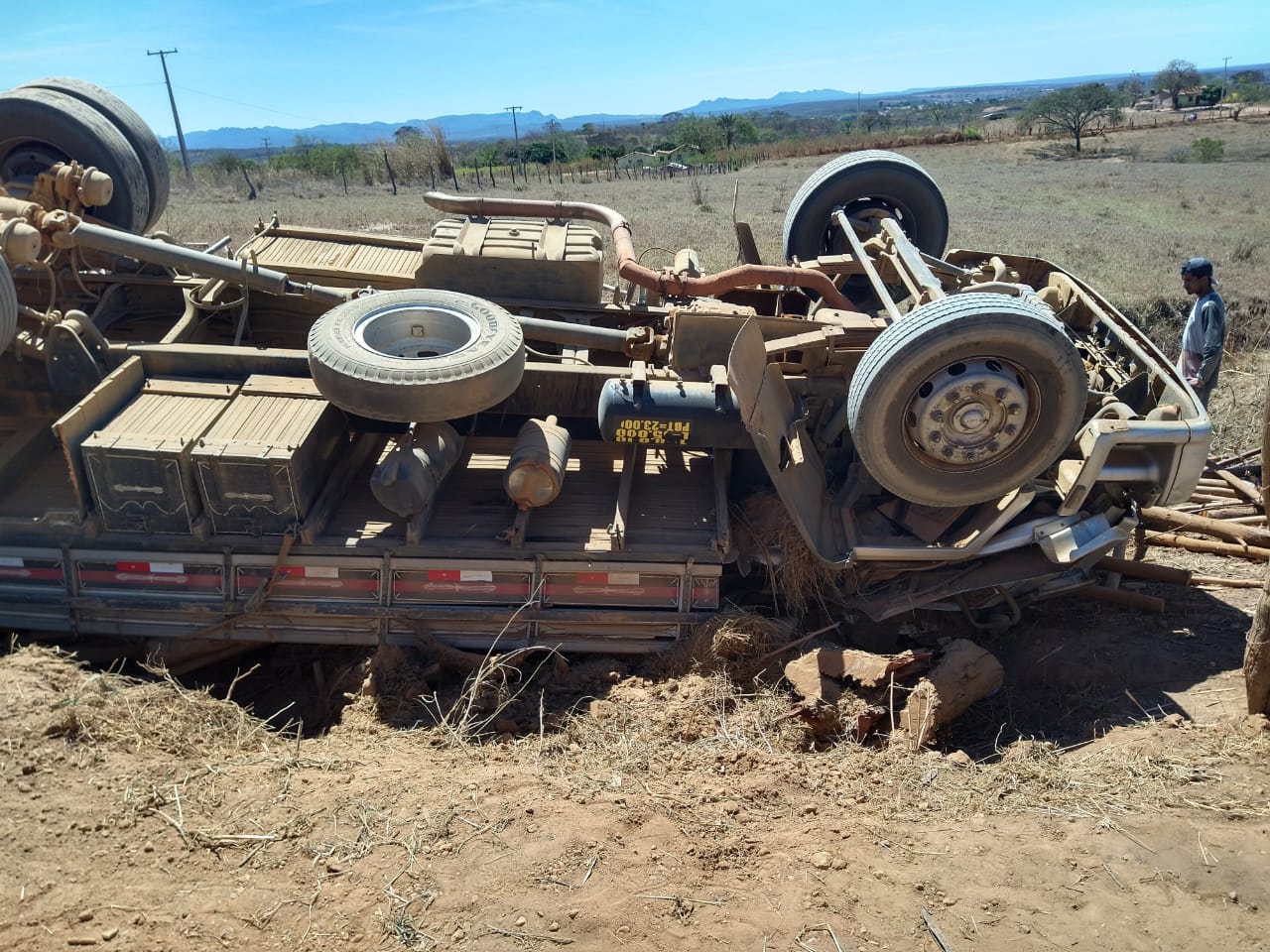 Um caminhão Ford, de cor prata, carregado de eucaliptos encontrava-se capotado e com esmagamento da cabine, o que provocou a morte dos três ocupantes do veículo, identificados como: SEBASTIÃO JESUS PINHEIRO (50 anos) e FRANCISCO JESUS PINHEIRO (55 anos), irmãos, e NEMIAS PINHEIRO GUIMARÃES (26 anos), sobrinho, moradores da cidade de Caculé.