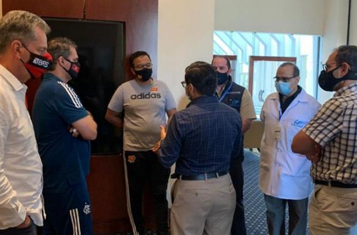 Após visita ao hotel onde o Flamengo está hospedado em Guayaquil, autoridades sanitárias do Equador decidiram interditar o estádio que seria palco da partida contra o Barcelona, nesta terça-feira, pela Libertadores. Desta forma, a partida está suspensa. A Conmebol ainda não se pronunciou.