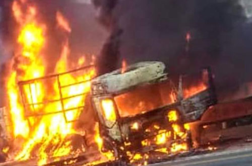 Na manhã deste sábado (03Out20), acidente grave envolvendo dois veículos na BR-116 no trevo do Entroncamento de Boa Nova, resultou também em um incêndio. A princípio a informação é que a colisão aconteceu por volta das 05h30min, e envolveu uma carreta e uma bitrem carregada de ração.