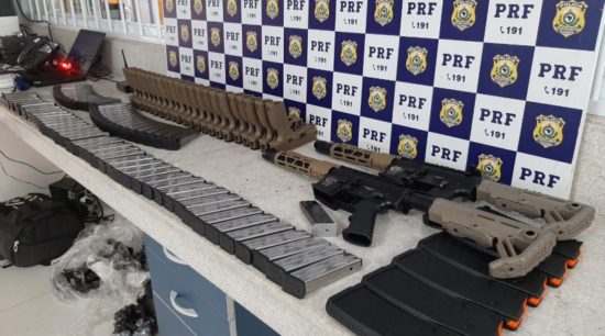 A Polícia Rodoviária Federal (PRF) apreendeu, na manhã desta segunda-feira (23), dois fuzis calibre 556 e 23 pistolas calibre 9mm durante fiscalização na BR-116, em Vitória da Conquista/BA. O arsenal estava sendo transportado por um homem de 32 anos, que seguia viagem em um ônibus que saiu de São Paulo com destino a Serrinha/BA.