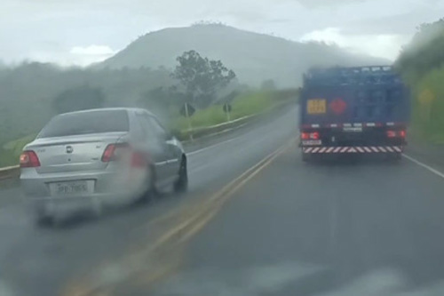 O Blog do Eddy registrou o exato momento em que um motorista de um carro de passeio fez uma ultrapassagem perigosa.