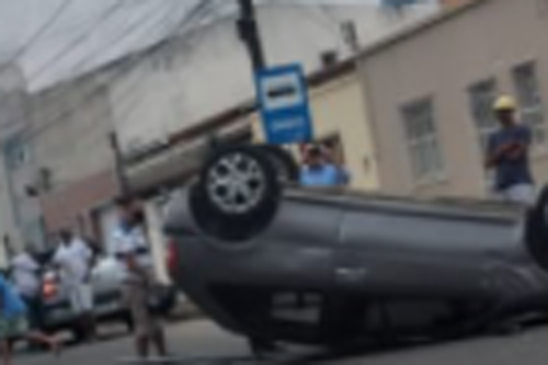 Um carro capotou na manhã desta quarta-feira (27) no Bairro Brasil, em Vitória da Conquista.