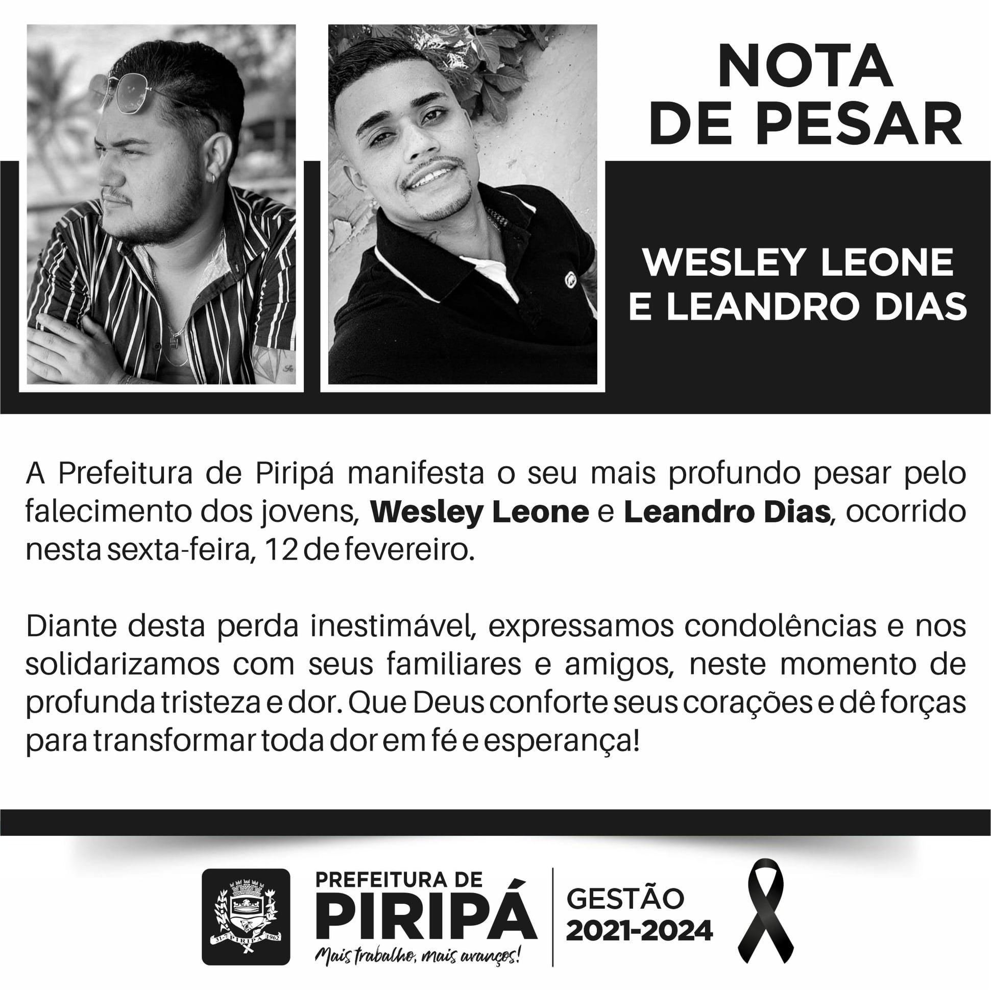 Tristeza na região: Prefeitura de Piripá emite nota de pesar pelas mortes dos jovens Wesley Leone e Leandro Dias