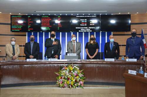 Na manhã desta segunda-feira, 22, a Câmara Municipal deu posse à prefeita Ana Sheila Lemos Andrade (DEM), em conformidade com a Lei Orgânica do Município (LOM), e Decreto Lei 201/67, devido à vacância com a extinção do mandato do prefeito Municipal de Vitória da Conquista, Herzem Gusmão Pereira (MDB), falecido no dia 18, e sepultado na noite de 20 de março de 2021.