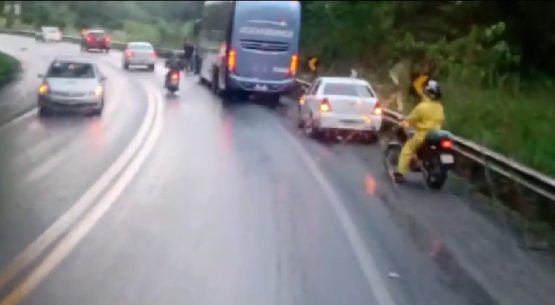 No momento do acidente, a pista estava bastante molhada por conta da chuva que atinge a região. Os condutores dos veículos seguiam em sentidos opostos, momento em que o motorista do ônibus se perdeu na curva, rodou e colidiu na caminhonete, que ficou destruída.