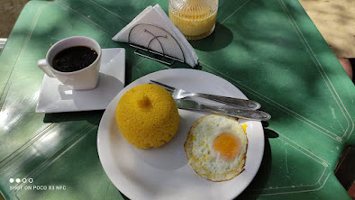Pedi um cuscuz com ovo (gema mole, faz o favor) e café preto. Tudo muito gostoso e feito na hora… inclusive o café. O meu pedido ficou por $8 Guedes no total ($4 do cuscuz, $1 do ovo e $3 do café), mas vc pode incrementar mais seu cuscuz se quiser com bacon, queijo e linguicinha frita ($ 1 Guede cada adicional). Lá tem outras opções de café e só voltando pra experimentar… E eu voltei, mas pra almoçar…hehe.