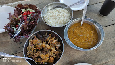O almoço só sai sob encomenda e custa $25 Guedes por pessoa. Tem que entrar em contato com o Alan pelo instagram (@ruralhabitat) e diz o quer comer e pra quantas pessoas vai ser, eles preparam e vocês combinam o horário. O almoço é super bem servido e de sabor sensacional. A minha pedida foi uma galinha caipira, 04 pessoas comeram bem e ainda sobrou…sério!