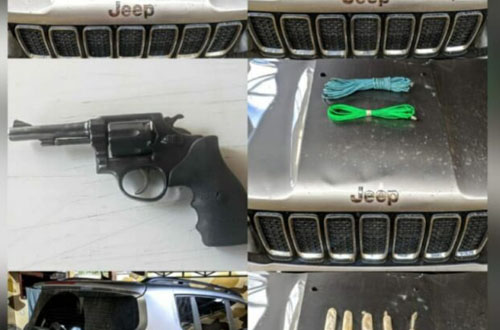 No veículo foi encontrada grande quantidade de artefatos explosivos 01 Espingarda Calibre 12; 5 Cartuchos de Calibre 12; 01 revólver cal. 38; 16 cartuchos de emulsão e cordel detonante, utilizados em explosões e assaltos instituições financeiros.