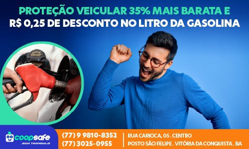Filiada a AAAPV, a COOPAFE – Proteção Veicular te garante qualidade, segurança e responsabilidade na proteção do seu veículo. Quando se trata da dinâmica no trânsito, seja nas estradas ou em vias urbanas, sabemos que imprevistos podem acontecer, mas não se preocupe! Nós da COOPSAFE – Proteção Veicular estaremos aqui para te ajudar. Temos a Proteção Veicular adequada as suas necessidades, com Assistência 24h em todo o território nacional, cobertura em casos de Colisões, Roubo, Furto e planos especiais que incluem proteção de para-brisas, proteção de todos os vidros, danos a terceiros e carro reserva. Tudo isso sem análise de perfil, preço justo e os benefícios que só o cooperado COOPSAFE- Proteção Veicular tem. O cooperado COOPSAFE – Proteção Veicular tem ainda desconto no litro do combustível durante todo o período m que for nosso cliente. Faça-nos uma visita no Centro Empresarial do Posto São Felipe, no bairro São Vicente, Vitória da Conquista. Faça uma cotação, adquira um dos nossos planos e siga tranquilo! Entre em contato pelo WhatsApp (77) 9.9810-8352 ou ligue (77) 3025-0955.