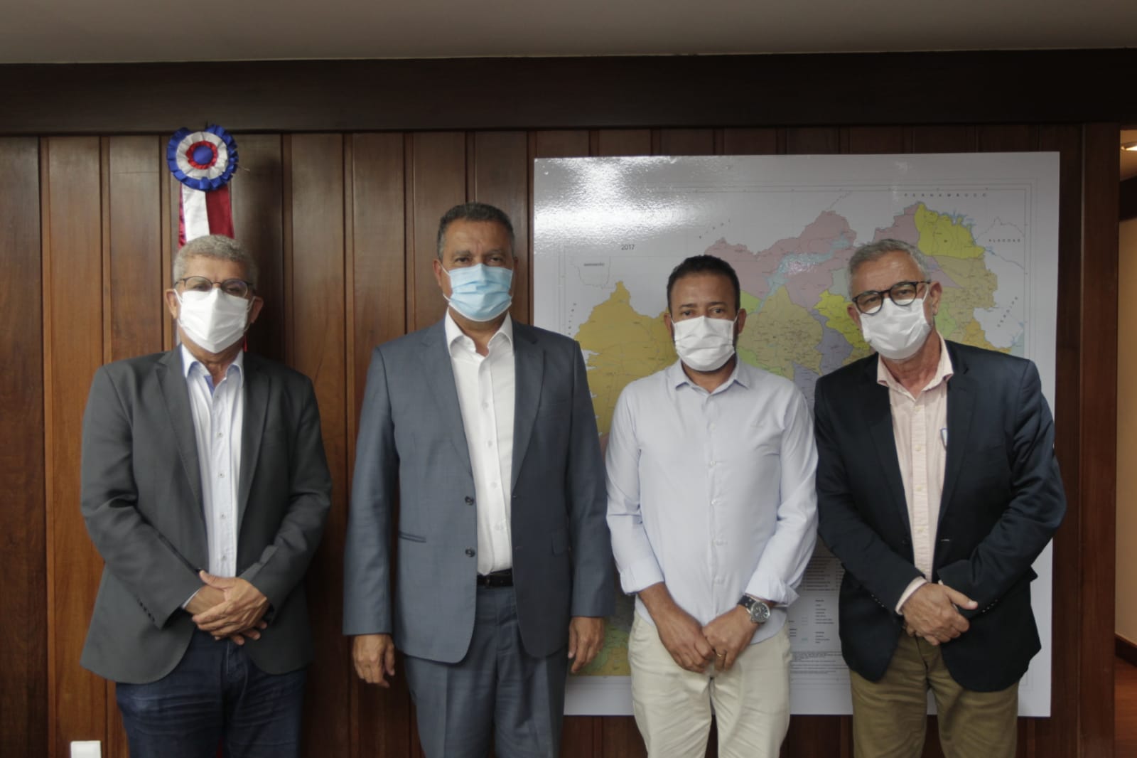 A pavimentação de estrada, urbanização de ruas e praças nas sedes e distritos,reformas e ampliação de colégios e estadios, e construçoes de novas unidades de saúde ,foram as principais reivindicações apresentadas ao governador Rui Costa, que recebeu em seu gabinete, nesta última quarta-feira (06), quatro prefeitos levados pelos deputados Waldenor Pereira (federal) e Zé Raimundo (estadual). Os gestores municipais presentes foram:Cloves Andrade, de Planalto, Herbert Gonçalves de Oliveira (Rebinha), de Ribeirão do Largo, Jilvan Teixeira (Galego), de Guajerú, e Flávio Rocha, de Piripá.