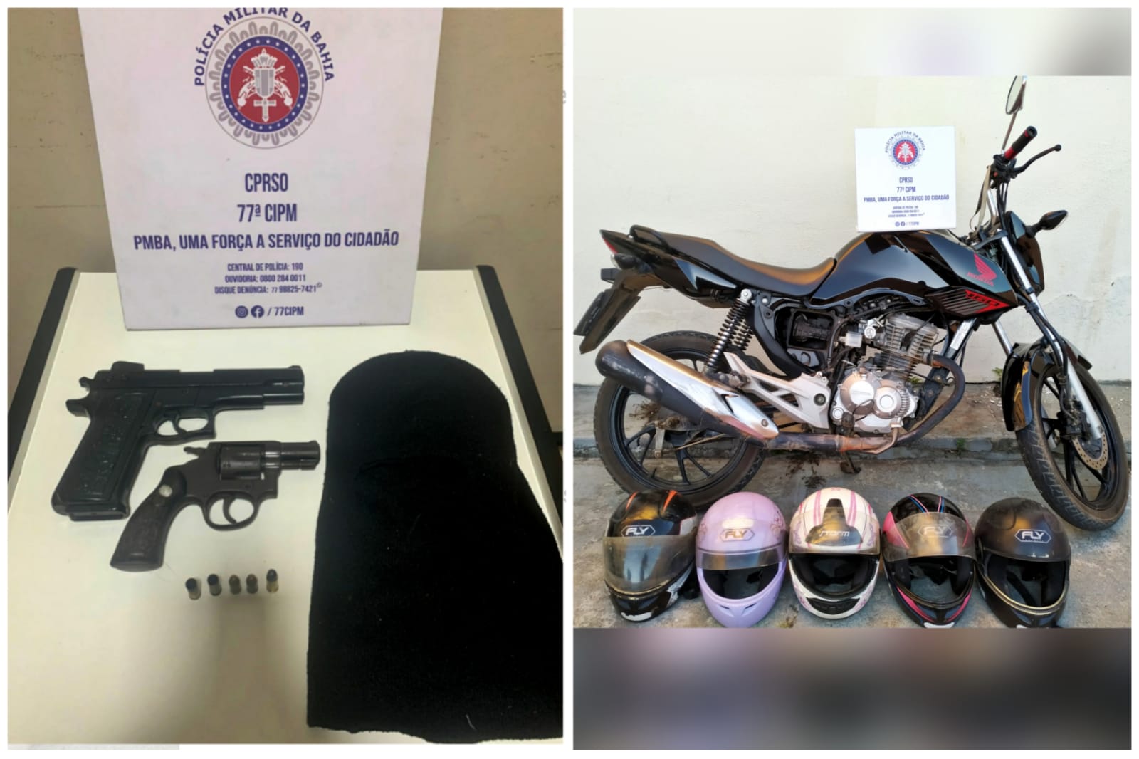 Por volta de 16h40 desta terça-feira (18), durante patrulhamento tático nas imediações do bairro Felícia, em Vitória da Conquista, o PETO da 77ª CIPM foi solicitada por um transeunte, o qual alertou os policiais ter visto dois indivíduos, um deles armado, chegando em uma motocicleta, supostamente roubada. No local apontado, dois indivíduos, com características similares às informadas, ao perceberem a chegada dos policiais se homiziaram em um imóvel próximo. Durante a verificação da edificação os policiais foram surpreendidos por disparos de arma de fogo, ao que repeliram à injusta agressão. Em meio ao embate um dos agressores foi atingido e caiu ao solo, juntamente com o armamento utilizado, enquanto o outro indivíduo evadiu-se e não foi localizado. Embora socorrido e conduzido ao Hospital Geral, o ferido não resistiu aos ferimentos e evoluiu a óbito. No local ainda foi encontrada uma motocicleta Honda 160, de cor preta, com restrição de roubo, diversos capacetes, além de um capuz. Os policiais se dirigiram à Unidade de Polícia, onde registraram a ocorrência e apresentaram todo o material arrecadado em poder do resistente. Ele foi identificado como Manoel Batista, de 42 anos, foi verificado que ele possuía passagem por receptação e era suspeito de ter participado de diversos roubos praticados na região do bairro Morada dos Pássaros, inclusive aos funcionários do Posto de Saúde, e nas imediações do bairro Candeias e Recreio.