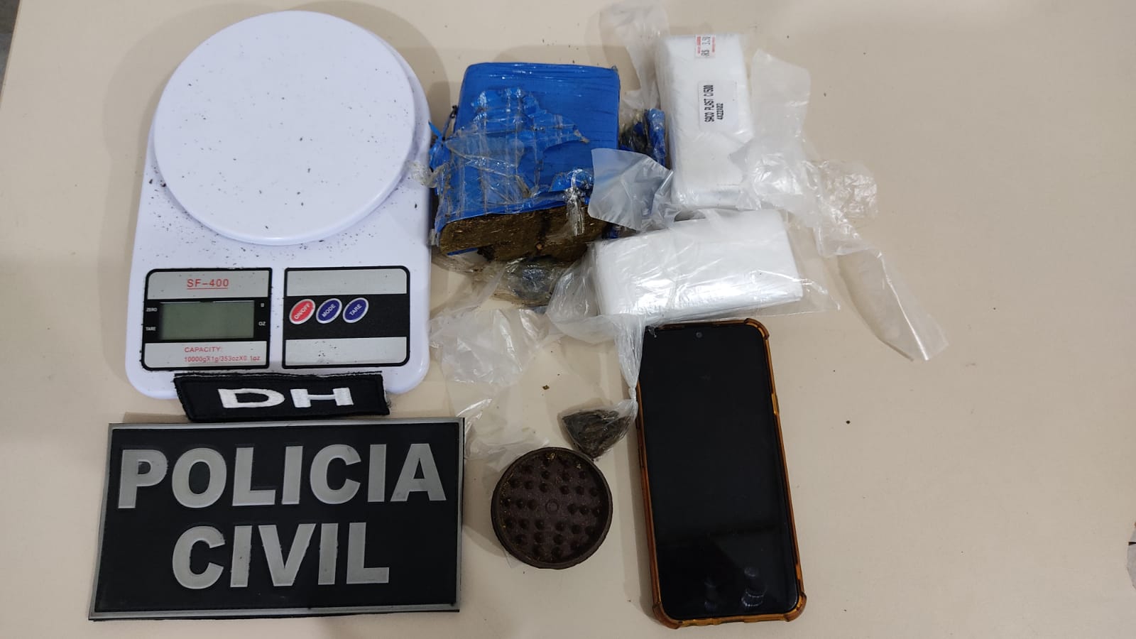 A Polícia Civil, através da equipe da DELEGACIA DE HOMICÍDIO – VITÓRIA DA CONQUISTA/DHPP , nesta tarde em diligências pelas investigações de crimes de homicídios praticados por facções criminosas nos Bairros Lagoa Azul , Brasil , Ipanema, Santa Cruz receberam denúncias de suposto trafico de drogas ocorrendo na avenida Bartolomeu de Gusmão, Bairro Ipanema, sendo surpreendido em flagrante delito indivíduo embalando drogas para ser entregue ao gerente do tráfico do Santa Cruz e do Bairro Brasil, sendo apreeendido aproximadamente meio kilo de maconha, balança de precisão, embalagens plasticas , tratando- se de menor infrator que foi conduzido ao Plantão Central, acompanhado de responsável legal.