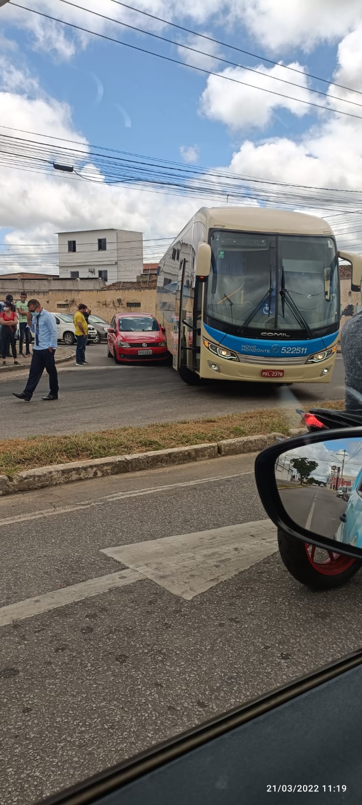 Um acidente envolveu um ônibus intermunicipal e um carro de passeio na movimentada Avenida Bartolomeu de Gusmão.