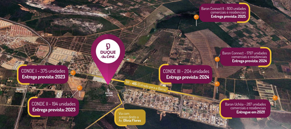 O Duque Du L’este junta-se ao Conde I, II e III, Baron Uchôa e Connect na consolidação da estratégia de desenvolvimento urbano da VCA para a região da Estrada da Barra do Choça. Além dos empreendimentos, a construtora fará também obras de infraestrutura urbana com abertura de uma via para ligar a região a avenida Olívia Flores. Ao todo, a VCA Construtora lançou mais de 3 mil unidades habitacionais na região entre loteamentos e condomínios, das quais, quase 800 delas, casas com entregas previstas para os próximos dois anos.