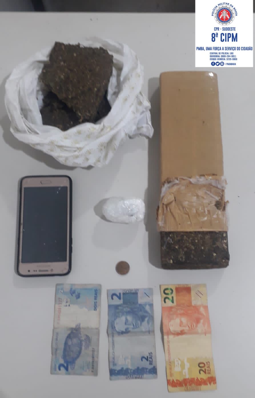 Por volta das 11 horas deste sábado (14/05), após inúmeras denúncias anônimas informando que uma rederida pessoa por várias oportunidades estaria transportando substâncias entorpecente nas Vans, vindo de Vitória da Conquista sentido a Itambé, os policiais da 8ª CIPM lotados em Itambé/BA, 3º Pelotão da Unidade, deram início a diligência para averiguar a situação. Ao realizem uma abordagem com fundada suspeita a uma Van que faz transporte de passageiros na referida linha, após uma busca minuciosa, os policiais encontraram com o autor as substâncias entorpecentes abaixo relacionadas.