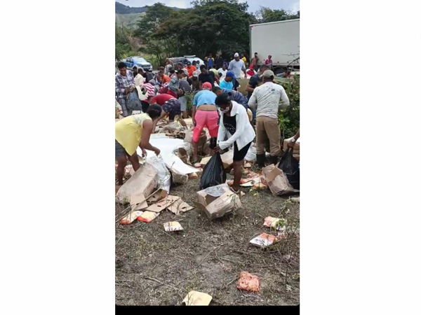 A população, sem qualquer dó, saqueou a carga de frangos, o que é crime.